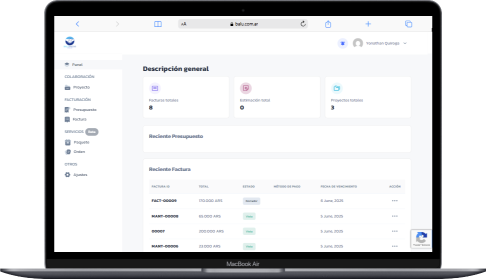 Explora tus proyectos y sus detalles para no perderte de nada. Accede fácilmente a tus facturas, presupuestos, solicitudes de soporte ¡y mucho más!