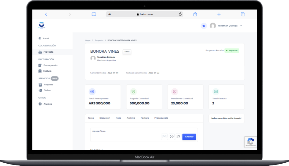 Explora tus proyectos y sus detalles para no perderte de nada. Accede fácilmente a tus facturas, presupuestos, solicitudes de soporte ¡y mucho más!